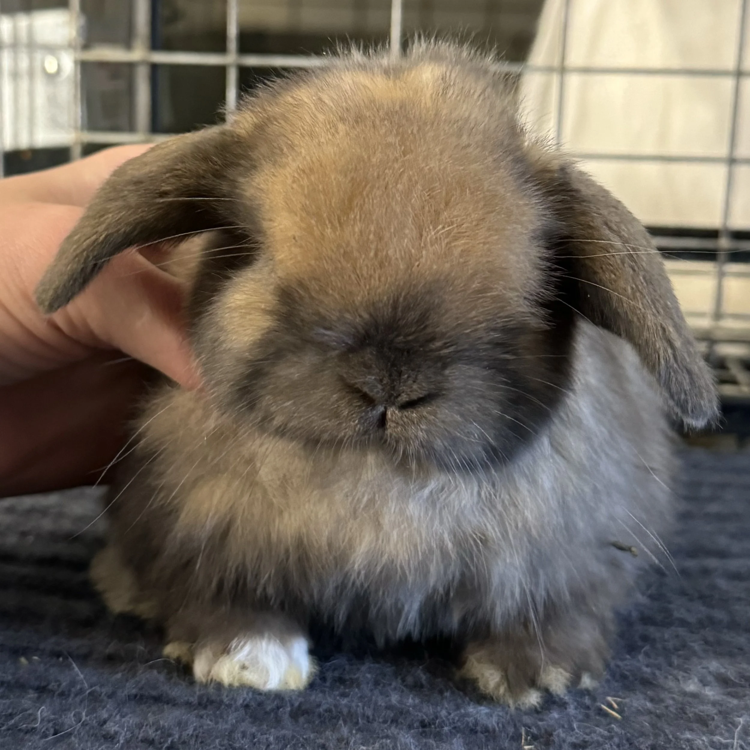 Mia has serious “cute factor”! If you are looking for that show quality look in your next pet, this is your girl! She is going to be a very beautiful rabbit with short ears, teddy bear head, and a wide bulldog stance. She is currently charting to be around 3lbs at maturity. Her white paw is a disqualification for open show or breeding, so Mia is available to a pet home only.